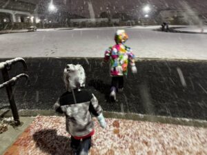 夜でしたが近所の公園まで行き雪遊びもしました☃️